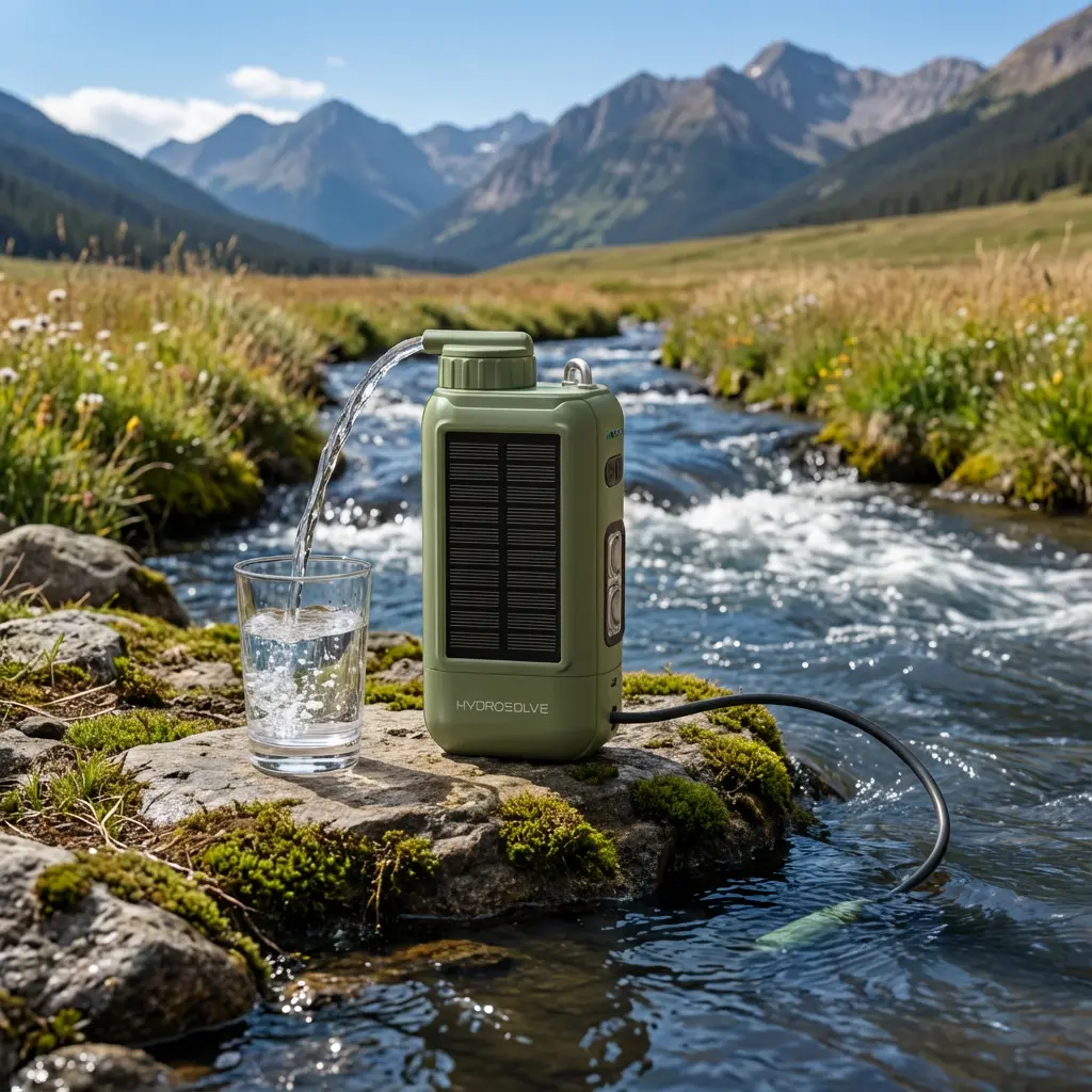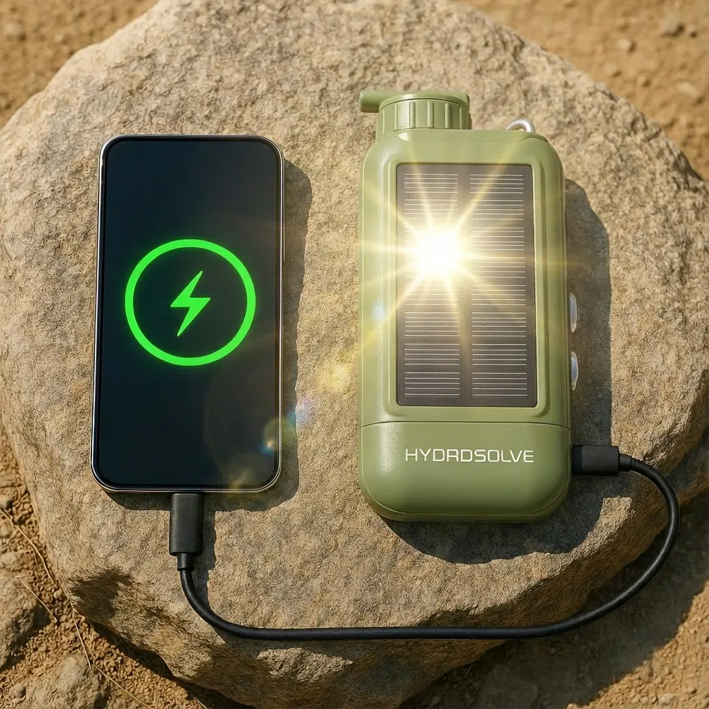 HYDROSOLVE SolarPro Outdoor Wasserfilter – Elektrisch, Tragbar & Wiederaufladbar – 0,01 Mikron – Solar/USB/Kurbel – Powerbank – für Camping, Wandern, Notfall & Survival