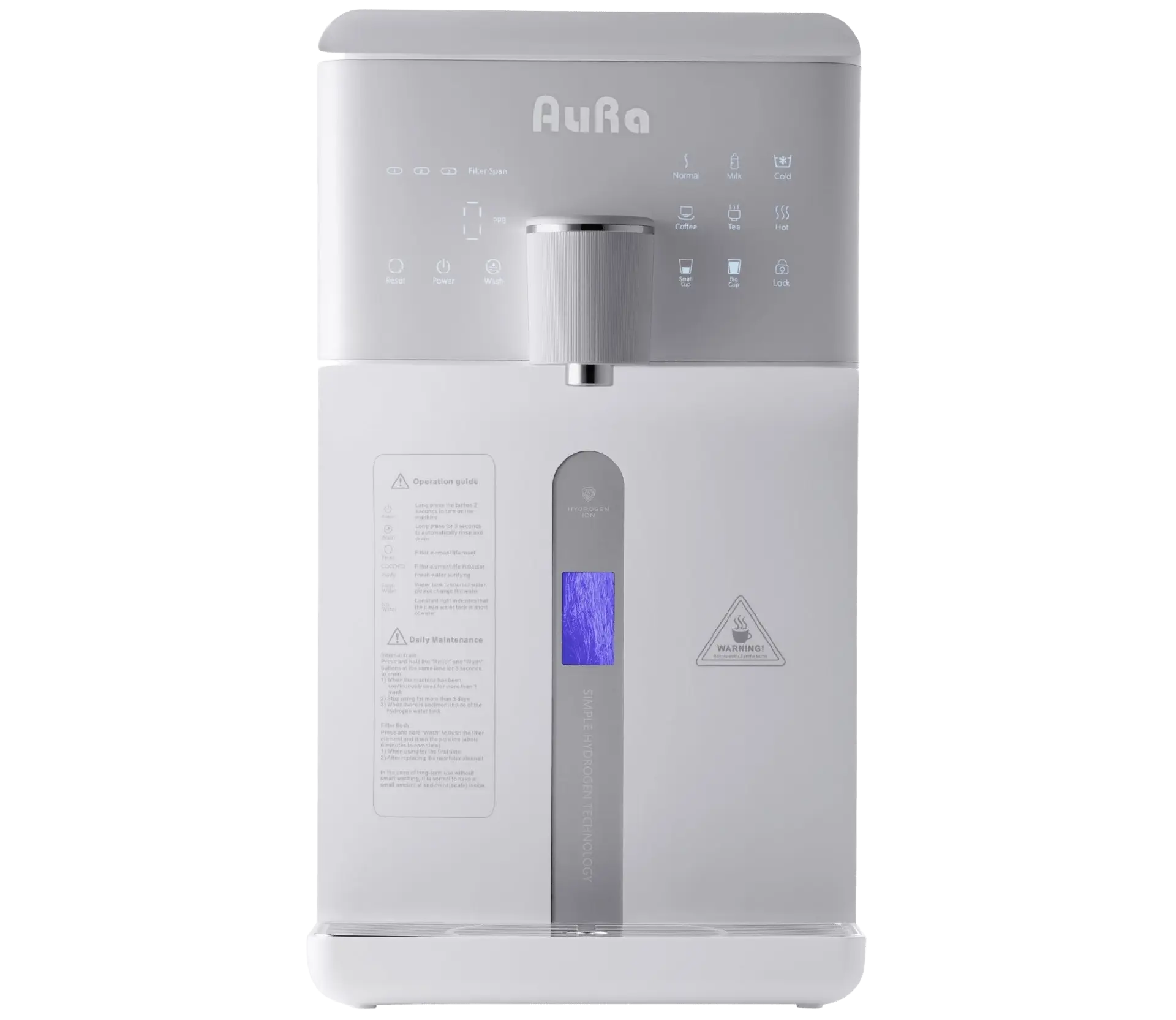 Die AORA® W23 mit Festwasseranschluss vereint vier Funktionen in einem eleganten Gerät: Osmosefiltration, Hydrogenwasser, gekühltes Wasser und Heißwasser – alles auf Knopfdruck, ganz ohne Tank. Ideal für moderne Haushalte, Büros oder Cafés, die Wert auf gesunde, komfortable und kontinuierlich verfügbare Wasserversorgung legen.